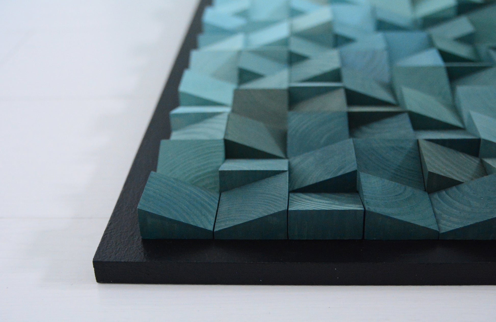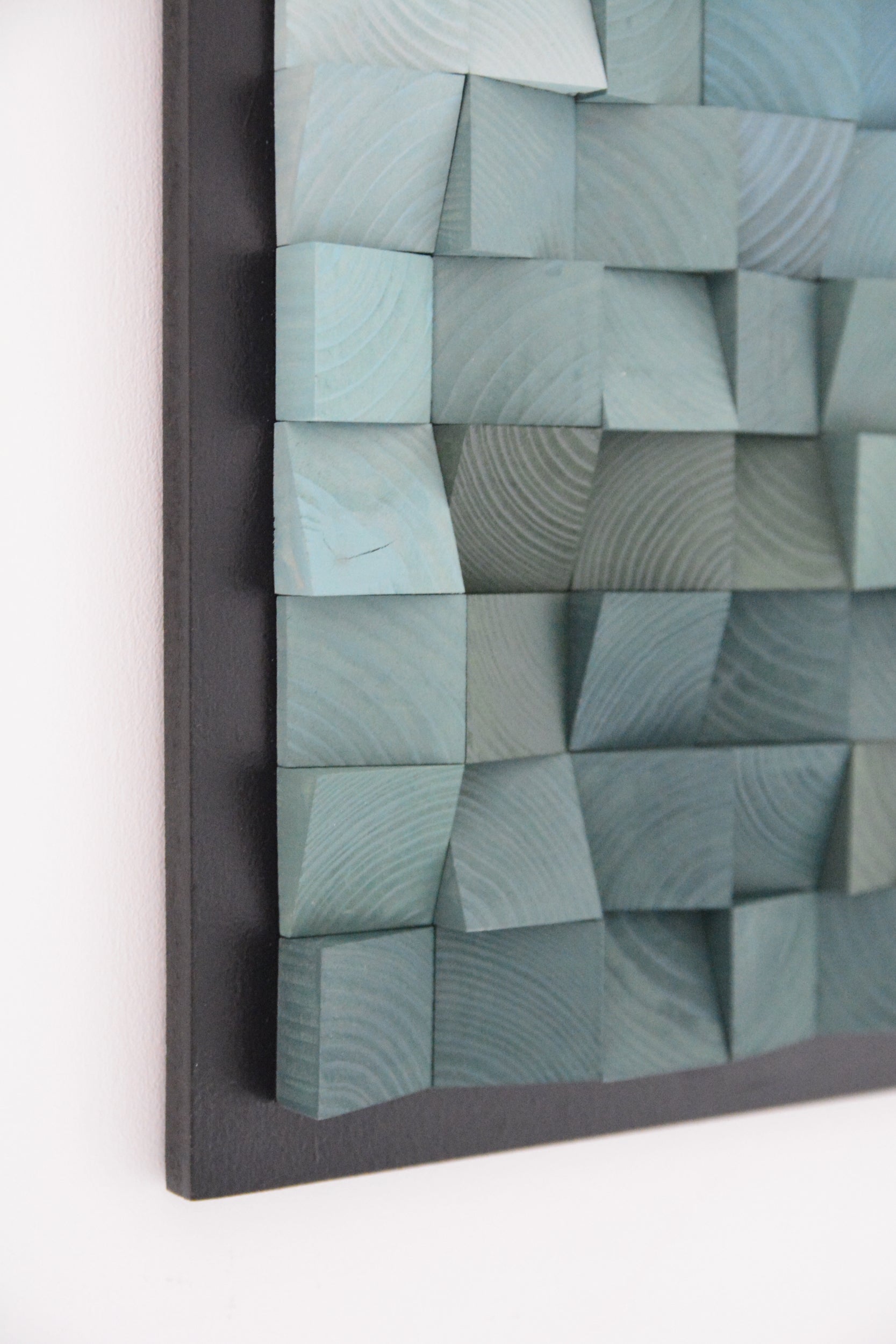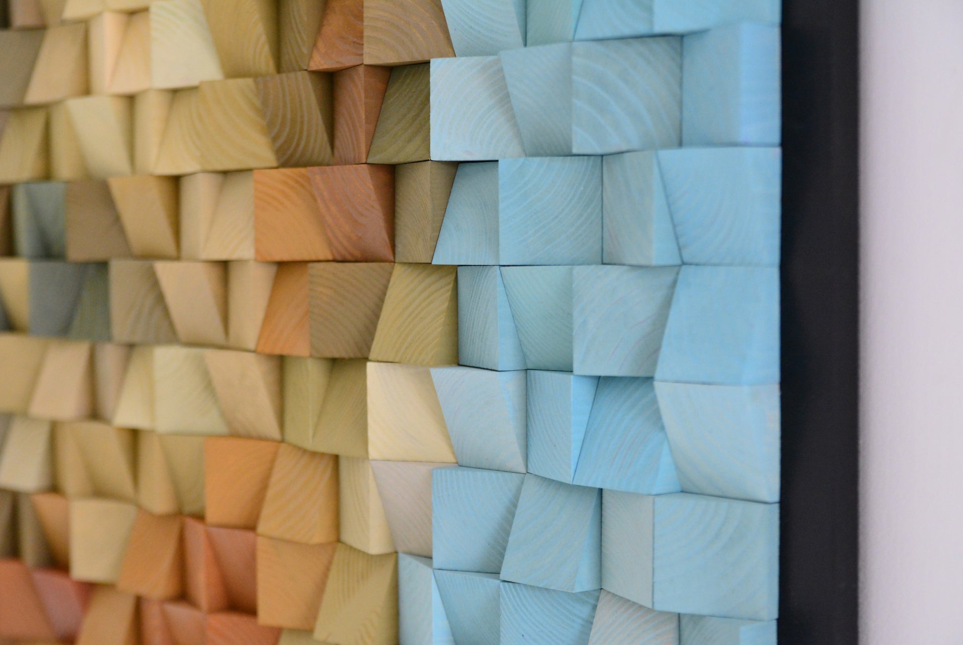 Handcrafted wooden pixel artwork.